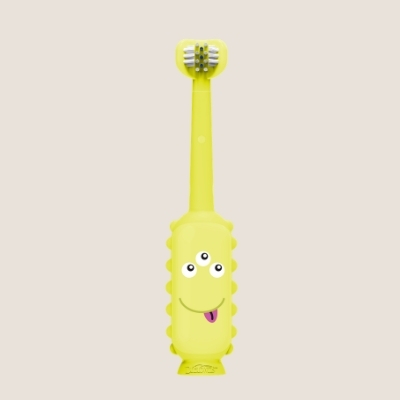 El cepillo de dientes de monstruo verde Dr. Brown’s para niños de 1 a 4 años tiene cerdas suaves para limpiar dientes y encías. Con base de ventosa y diseño fácil de sujetar, facilita el cepillado. Reemplazar cada tres meses.