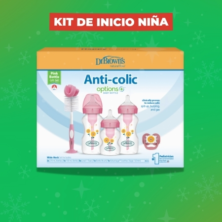 El Kit de Inicio Dr. Brown´s incluye 1 biberon 5oz, 2 Biberones 9 oz, 1 chupón prevent de 0 a 6 meses, 1 cepillo de limpieza.