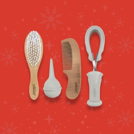 - Esenciales para recién nacidos. Este kit es un gran regalo para padres y futuros padres con nuestra versión ecológica de cepillo y peine. HG084