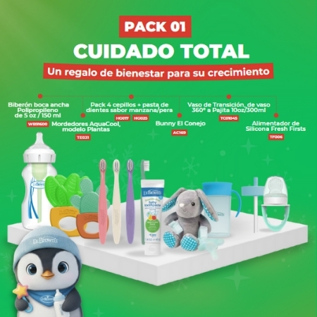 • Todo lo esencial para el cuidado y crecimiento del bebé en un solo pack.
