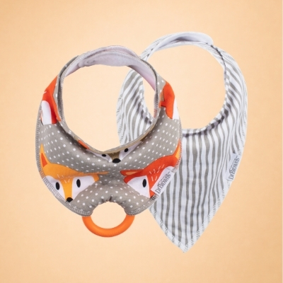 - Babero de bandana con mordedor. El babero de dentición para bebé cuenta con un botón a presión para proporcionar el ajuste perfecto para tu mordedor. El mordedor Snap-On también se puede cambiar por casi cualquier mordedor con asa