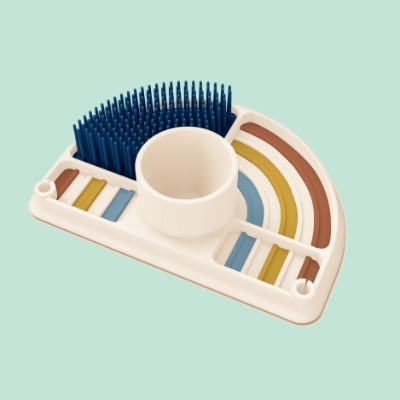 Soportes de cepillo de botella integrados. Guarda tus cepillos para biberones en prácticos soportes que están diseñados en ambas esquinas del tapete.