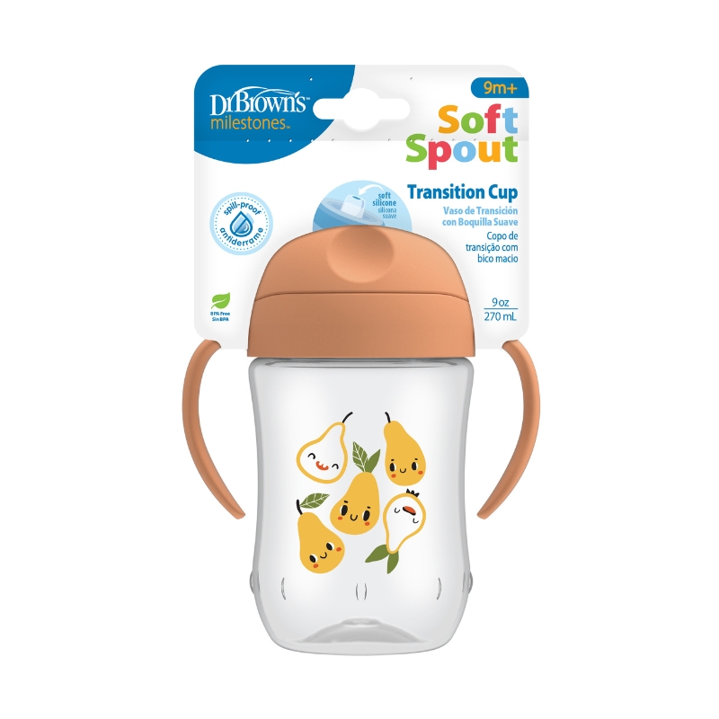 ¡Punta y sorbo en cualquier dirección! La primera taza con popote para bebé de Dr. Brown’s simplifica la transición de botella a taza para ti y el bebé. Diseñado con una pajita suave y pesada, el bebé puede beber desde cualquier ángulo, ayudándoles a pasar de volcar la taza boca abajo a beber en posición vertical. La taza de popote para bebé cuenta con asas que se bloquean en su lugar para que sea fácil de sostener las manos pequeñas. La taza está contorneada y las asas son extraíbles, por lo que crece con el bebé a medida que mejoran sus habilidades para sostener la taza. La tapa fácil de viajar se abre para que el bebé beba y se cierra para mantener el popote limpio cuando no está en uso, además de que es a prueba de derrames.
